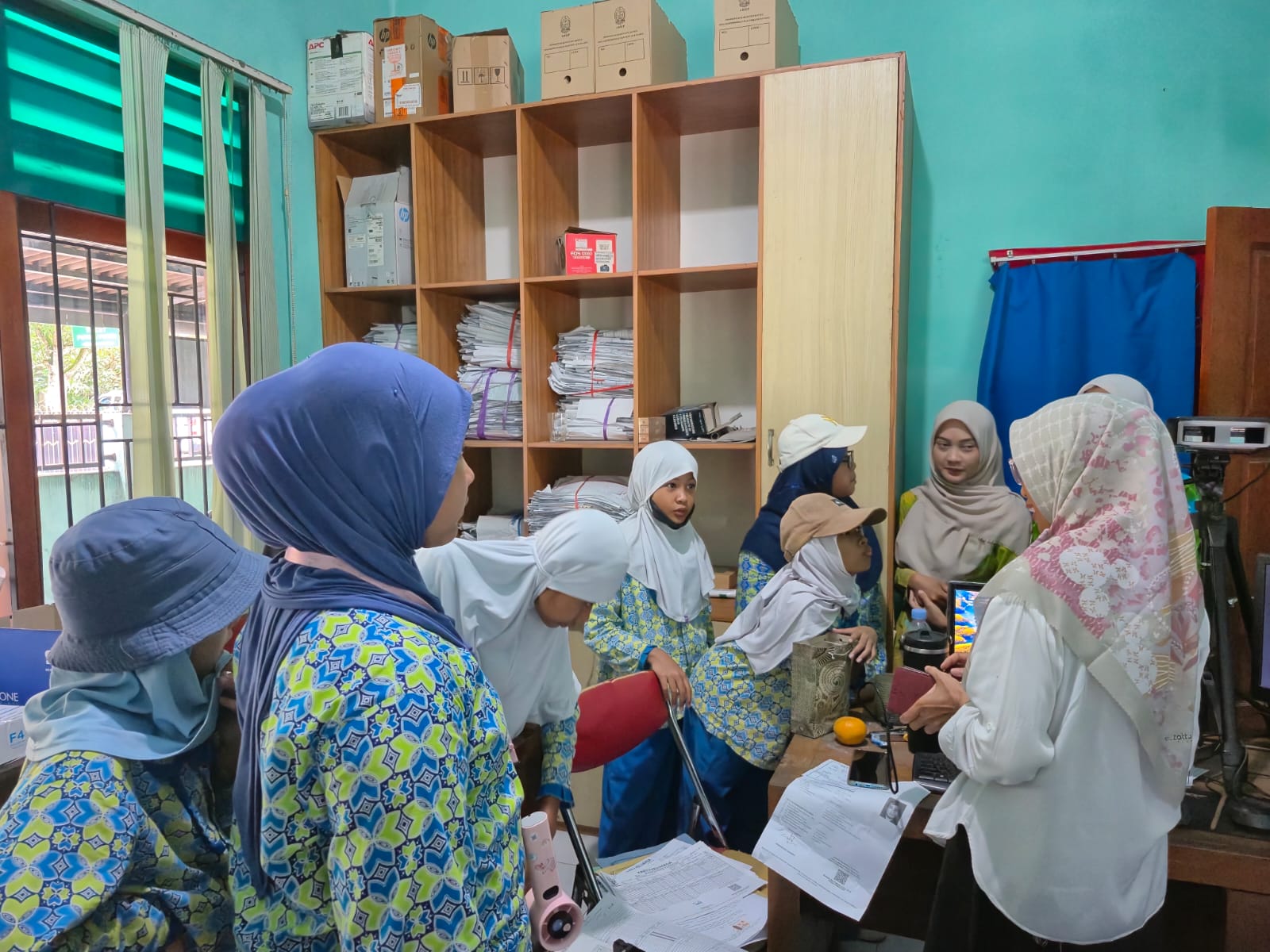 Setelah pemaparan materi dan diskusi selesai dilanjutkan ke ruangan operator pembuatan KK dan KTP di Jawatan Pelayanan. Plt. Panewu Anom menjelaskan tentang sarana prasarana yang digunakan untuk pencetakan KK dan KTP.