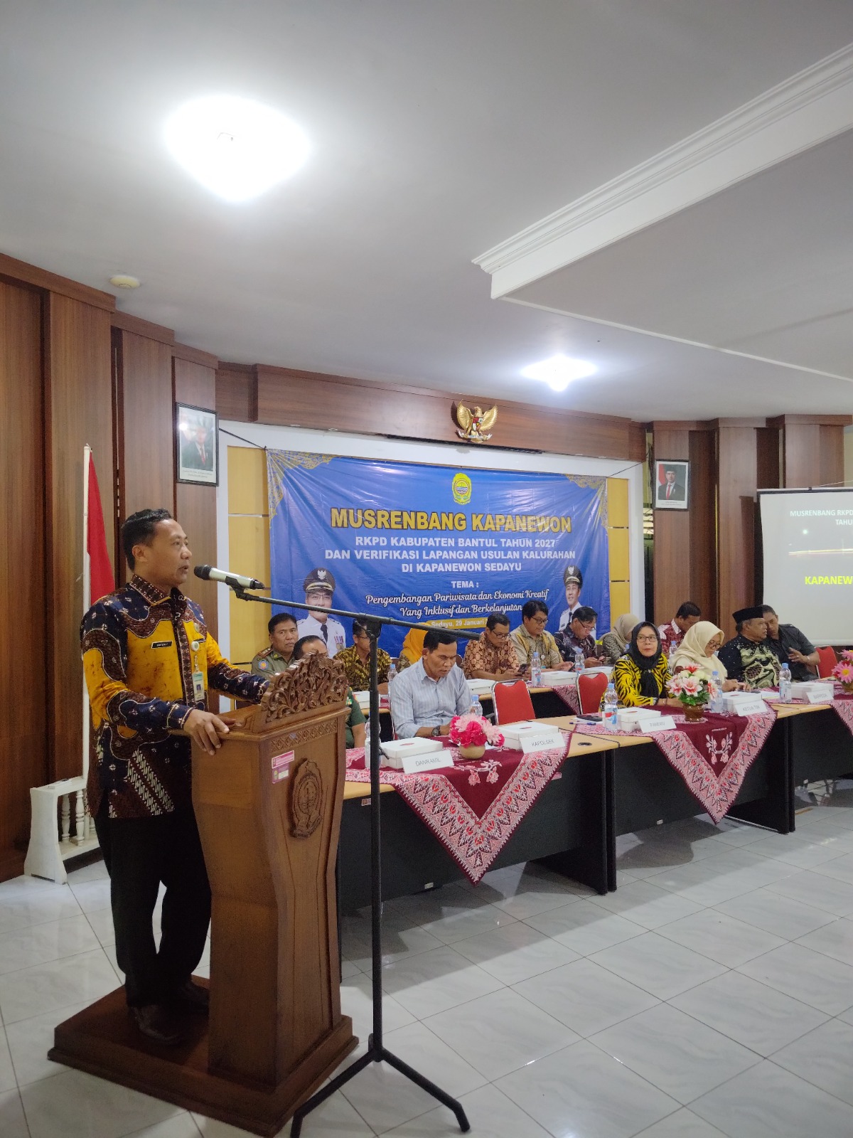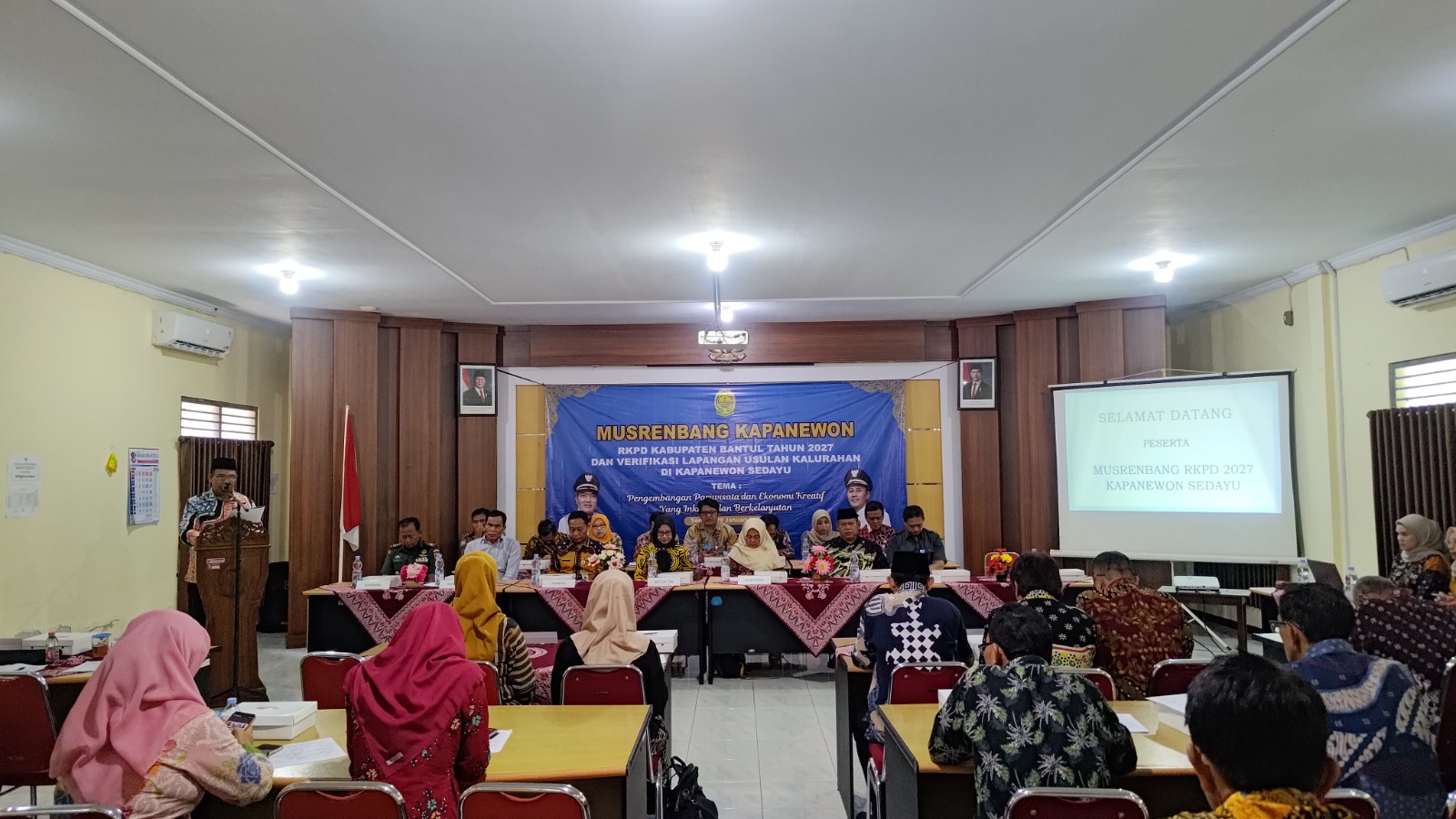 Kamis, 29 Januari 2026 di Aula Kapanewon Sedayu diselenggarakan Musyawarah Perencanaan Pembangunan Rencana Kerja Pemerintah Daerah 2027 Kapanewon dengan tema Pengembangan Pariwisata dan Ekonomi Kreatif yang Inklusif dan Berkelanjutan. Ketua tim dari Kabupaten Bantul adalah Staf Ahli Bupati Bidang Ekonomi, Keuangan dan Pembangunan, Dra. SRI NURYANTI, M.Si. Dan untuk OPD yang terkait dengan usulan Kalurahan tahun 2027 adalah Dinas Perhubungan, Badan Penanggulangan Bencana Daerah, Satuan Polisi Pamong Praja, Dinas Pekerjaan Umum, Perumahan dan Kawasan Pemukiman, Badan Kesatuan Bangsa dan Politik, Dinas Penanaman Modal dan Pelayanan Terpadu Satu Pintu serta Dinas Ketahanan Pangan dan Pertanian.